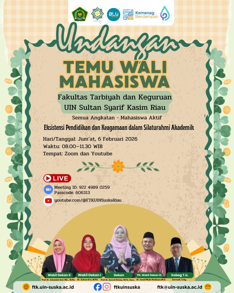 Yang kami muliakan Orang Tua/Wali Mahasiswa Fakultas Tarbiyah dan Keguruan UIN Sultan Syarif Kasim Riau.